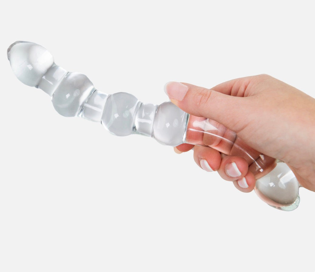 This dual-sided glass dildo features a ribbed side and a smooth side, providing varied sensations when used. Each end is also curved for easy, comfortable handling and pinpoint G-spot stimulation.